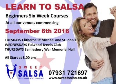 Don't miss out! Our popular 6 week salsa courses for complete beginners restart in the week beginning September 5th 2016.